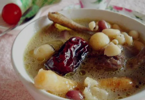 功效:芡实有补脾、祛湿的功效,温氏乌骨**含有黑色素、B族维生素、18种氨基酸和18种微量元素,而且脂肪含量很低,这道汤能健脾祛湿、利水肿、补气养生。